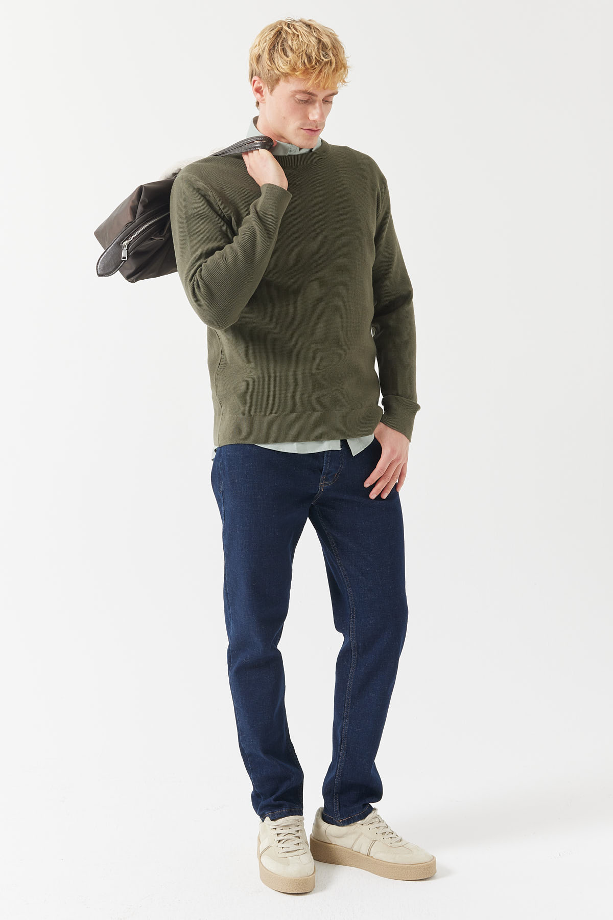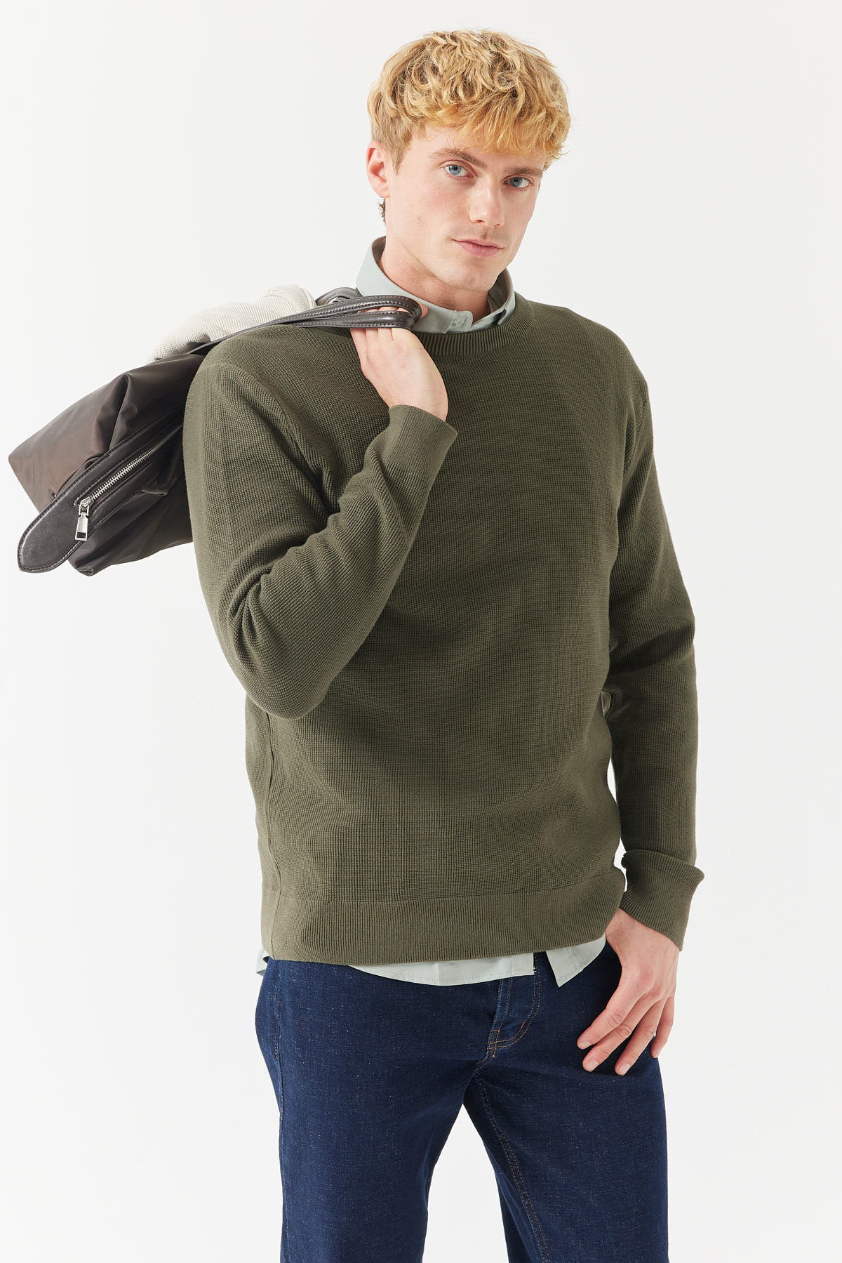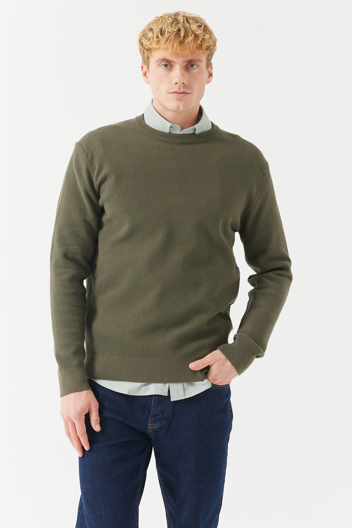 ERKEK BİSİKLET YAKA PİRİNÇ ÖRGÜ TRİKO KAZAK EM2113
