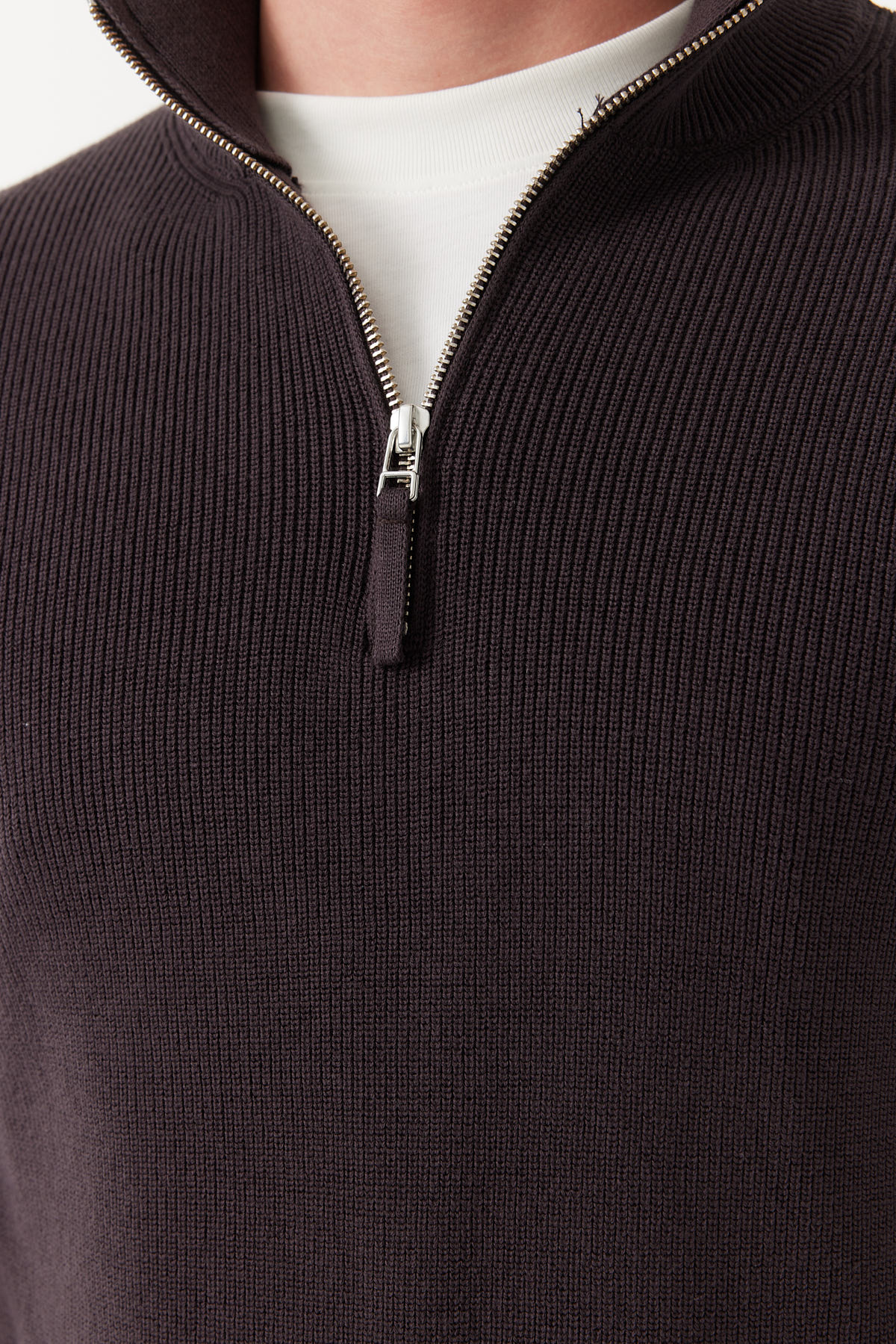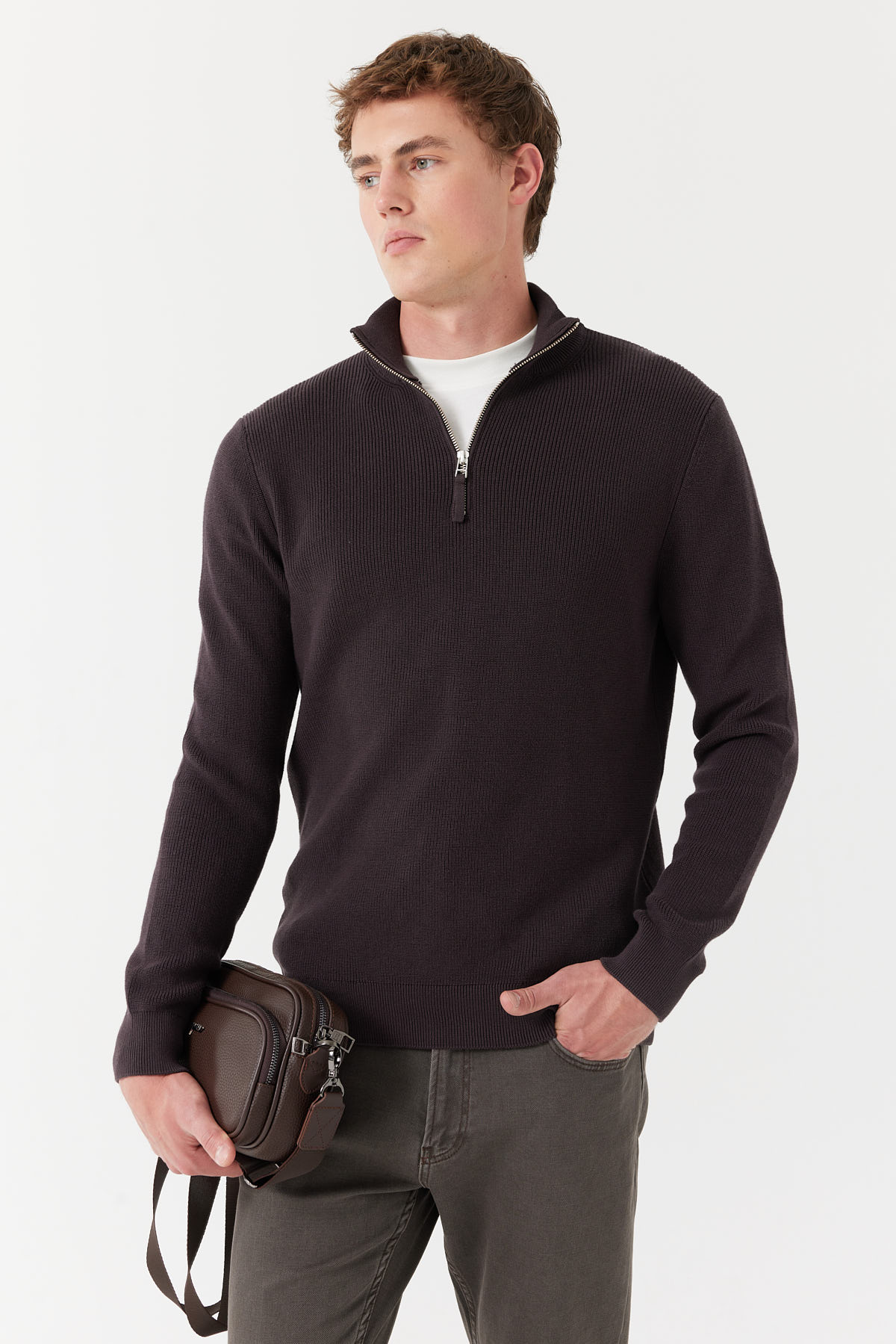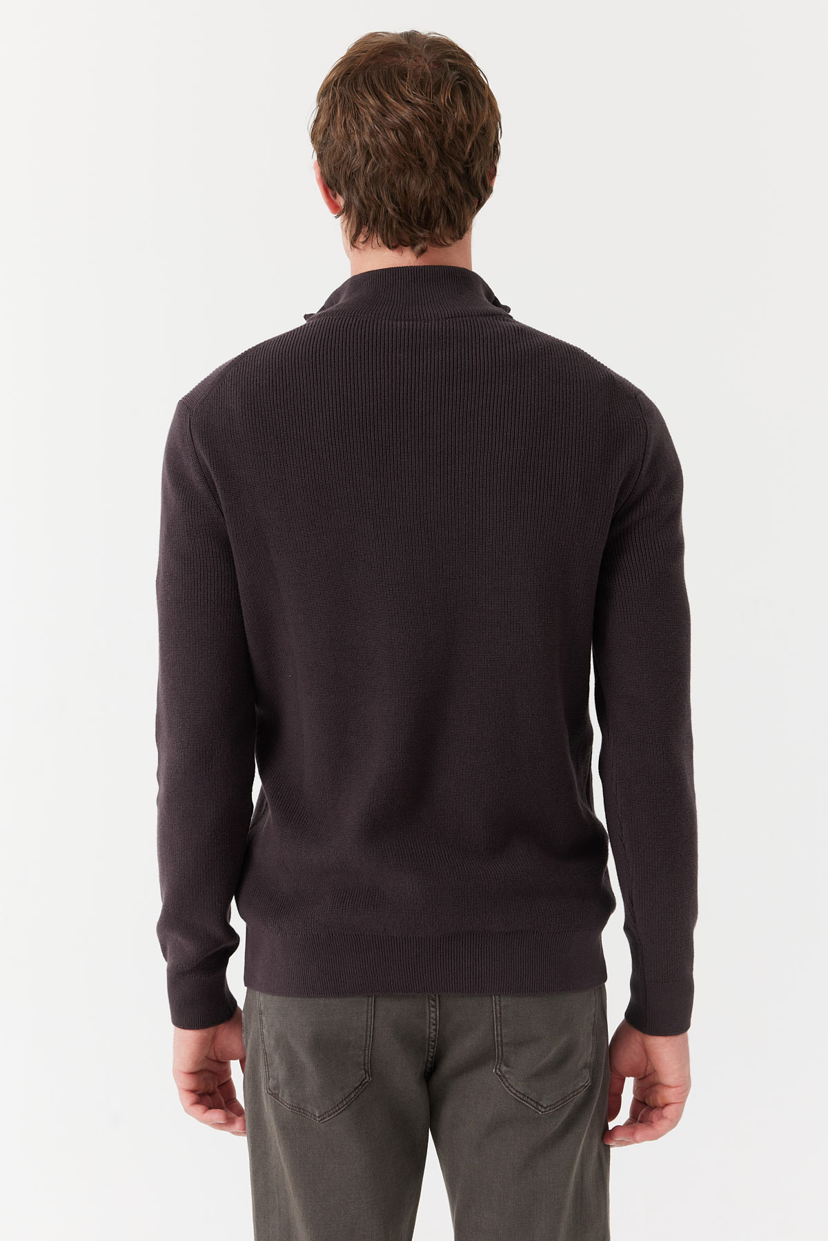 % 100 pamuk, dik yaka, yarım fermuarlı, uzun kollu, triko kazak.