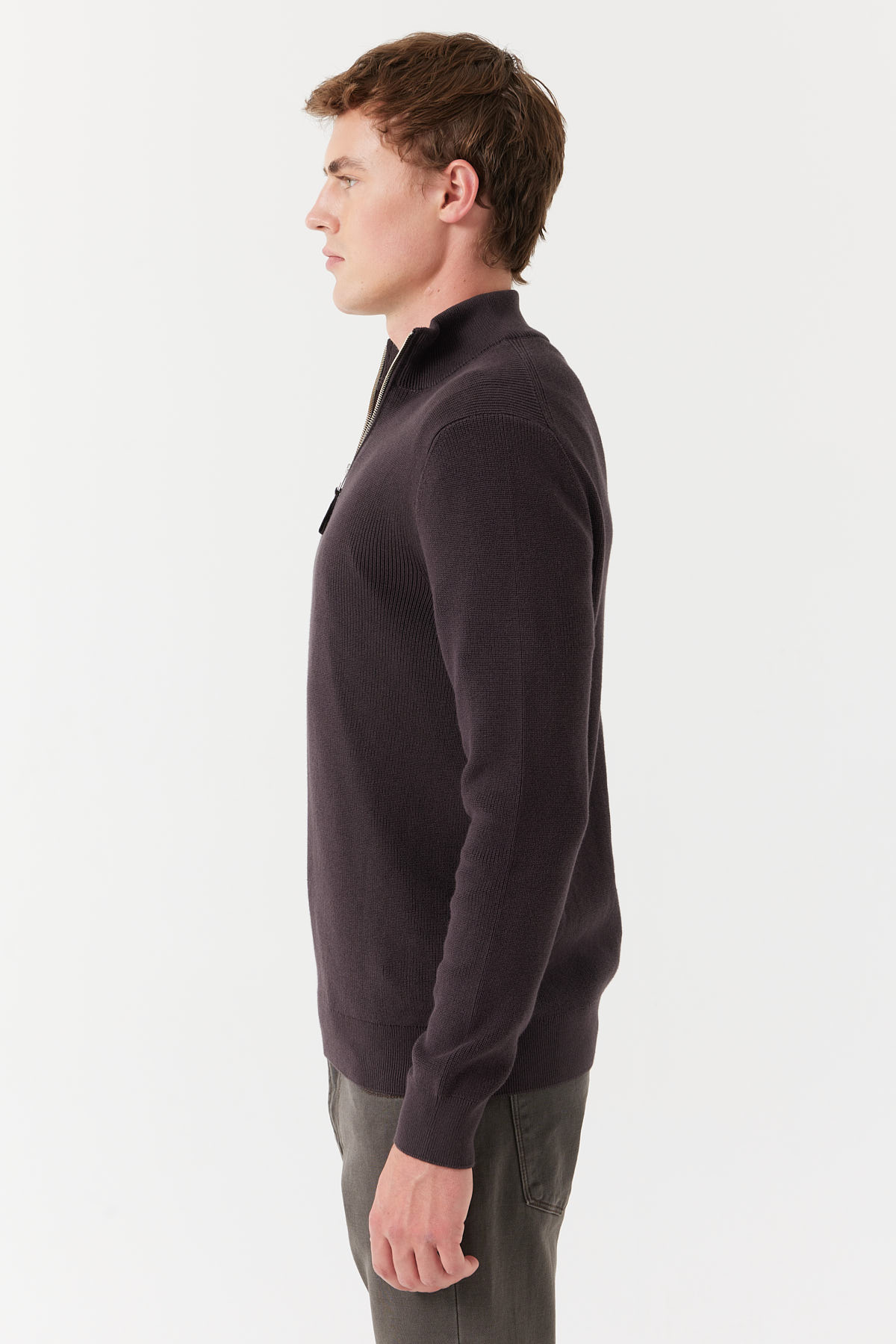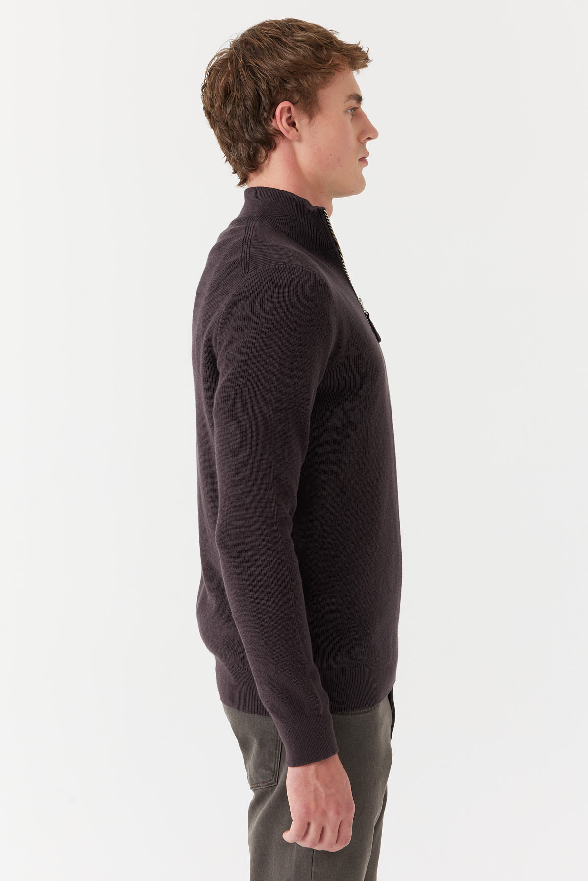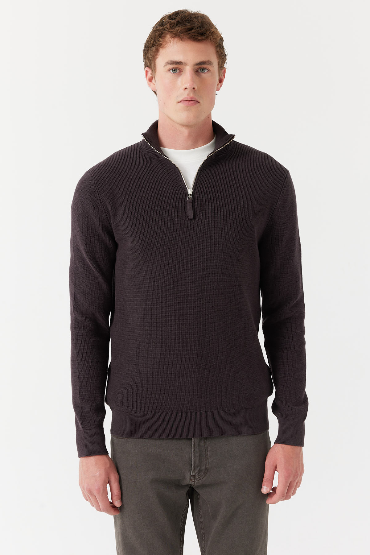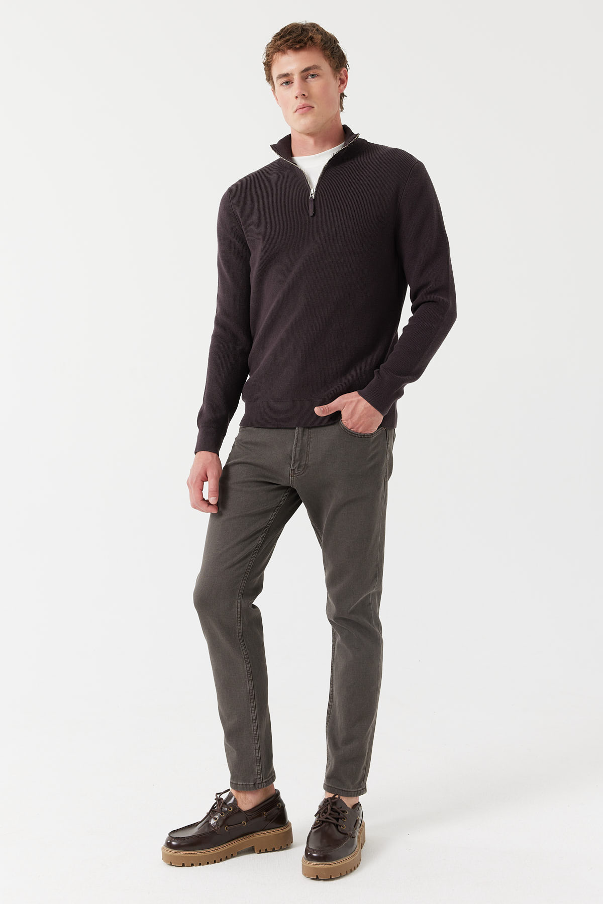 % 100 pamuk, dik yaka, yarım fermuarlı, uzun kollu, triko kazak.