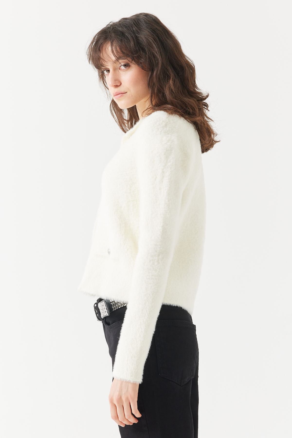 Kadın Cepli Peluş Görünümlü Hırka