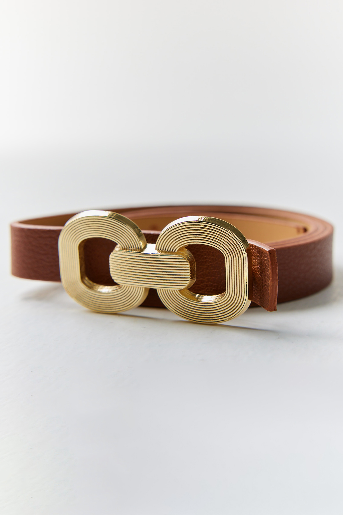 Dokulu deri görünüm, toka detaylı, kemer.